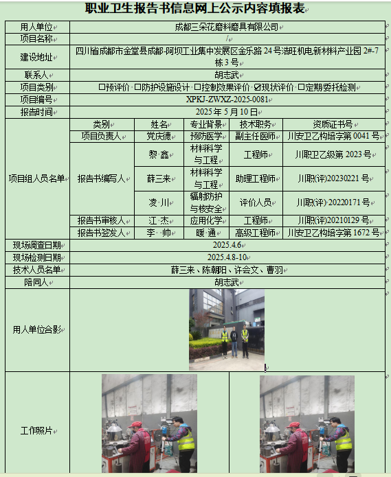 成都三朵花磨料磨具有限公司职业病危害因素现状评价