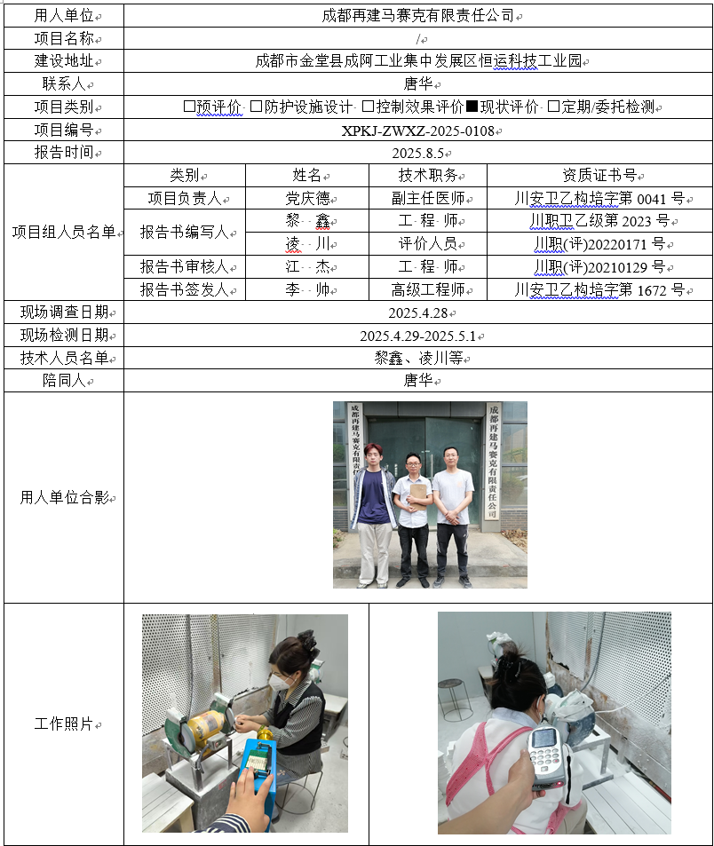 四川鑫利达科技发展有限公司职业病危害因素定期检测