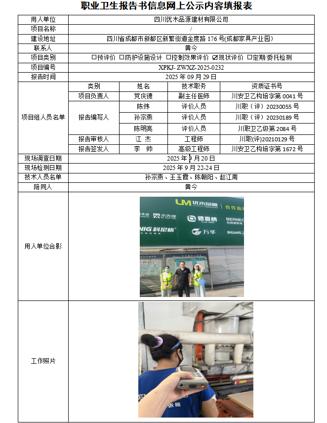 遂宁良泽科技有限公司职业病危害因素定期检测