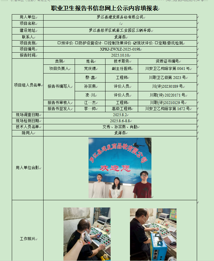 罗江县建发商品砼有限公司职业病危害因素现状评价