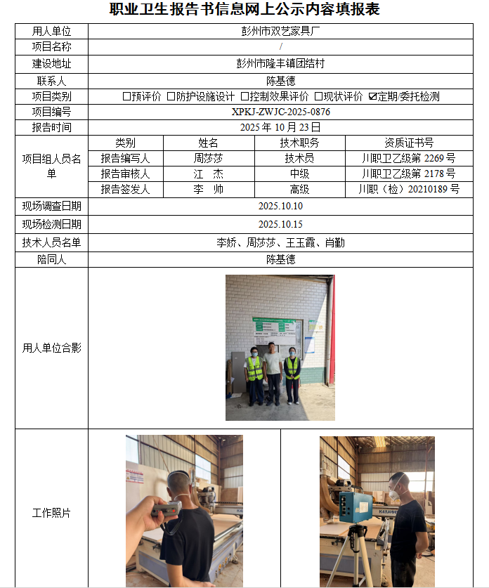 内江鑫明石油机械有限责任公司职业病危害因素定期检测
