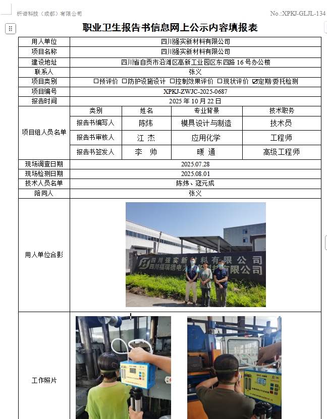 浦项(成都)汽车配件有限公司职业病危害因素现状评价