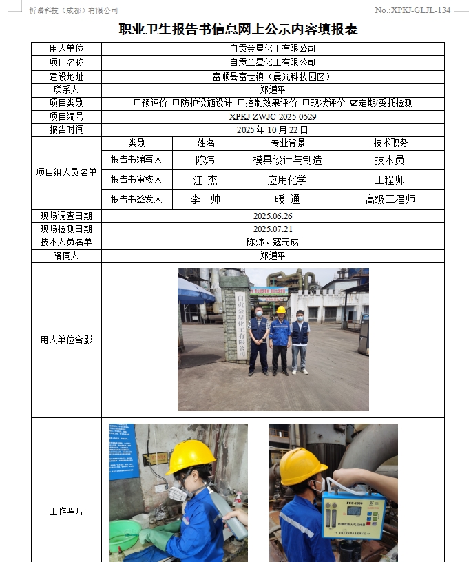 广汉市峰林模具有限公司职业病危害因素定期检测