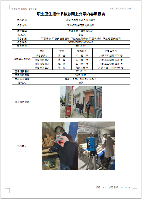 成都市欣博典家具有限公司职业病危害因素定期检测