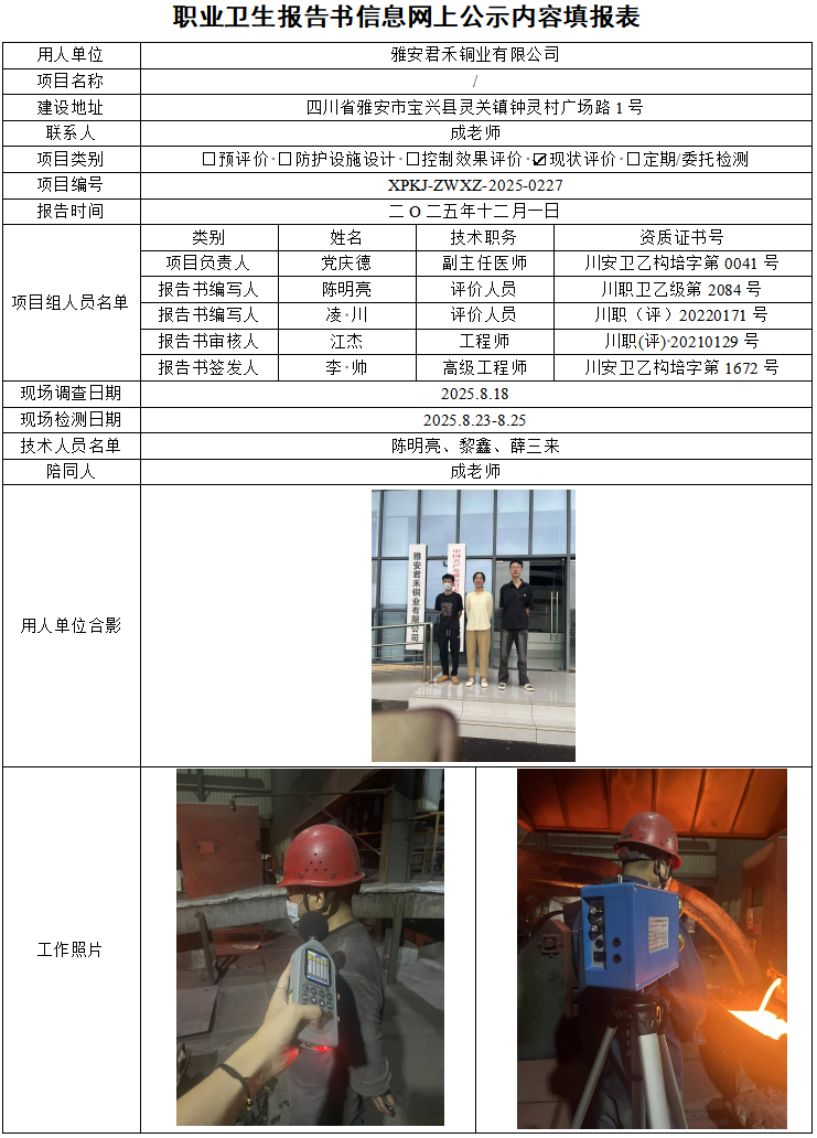 内江鑫发石油机械有限责任公司职业病危害因素定期检测