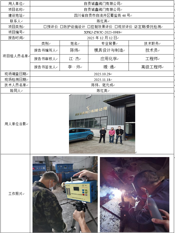 自贡诚鑫阀门有限公司职业病危害因素定期检测