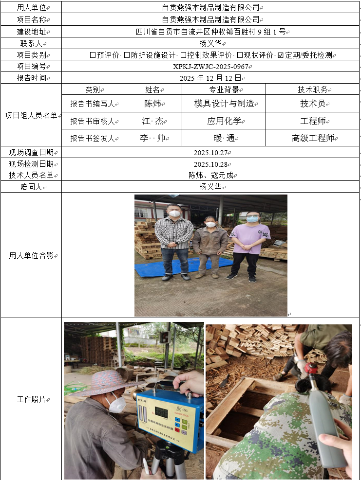 自贡燕强木制品制造有限公司职业病危害因素定期检测