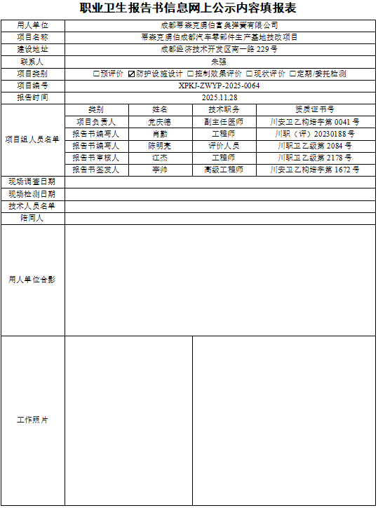 成都蒂森克虏伯富奥弹簧有限公司职业病防护设施设计