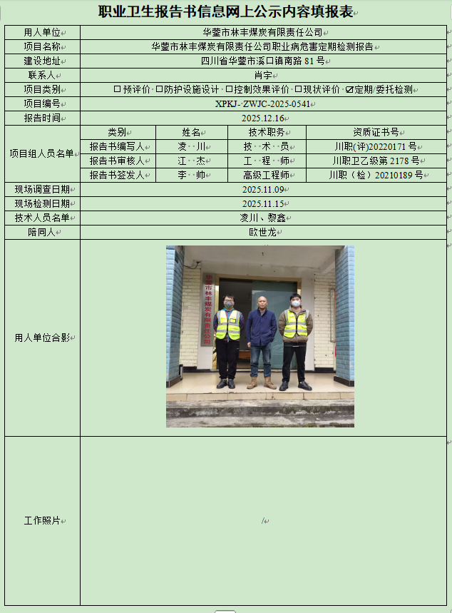 华蓥市林丰煤炭有限责任公司职业病危害因素定期检测