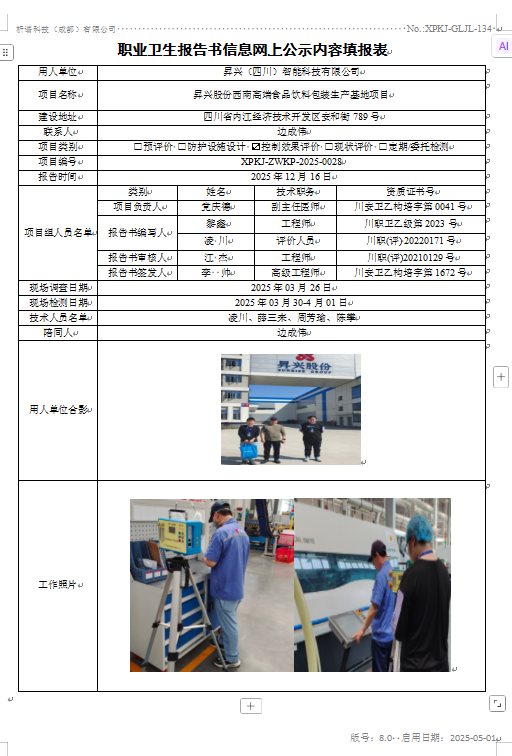 昇兴(四川)智能科技有限公司职业病危害控制效果评价