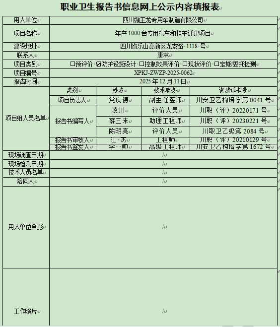 四川霸王龙专用车制造有限公司职业病防护设施设计