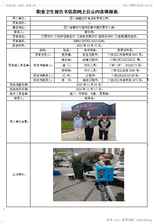 四川益鑫达机电设备有限公司职业病危害现状评价