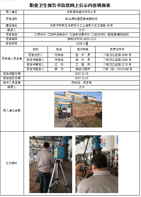 自贡市锋锐新材料有限公司职业病危害因素定期检测