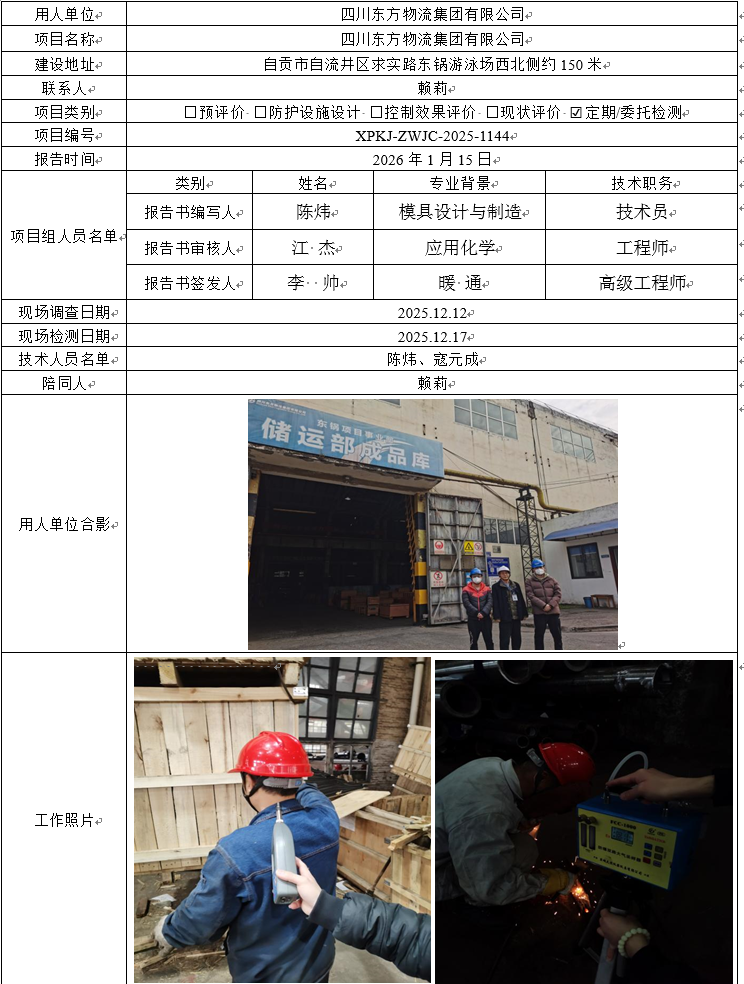 四川东方物流集团有限公司职业病危害因素定期检测