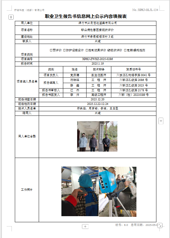 金堂大润环境治理有限公司职业病危害控制效果评价