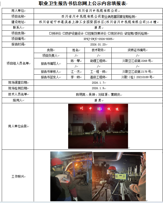 自贡博发能源科技有限公司职业病危害因素定期检测