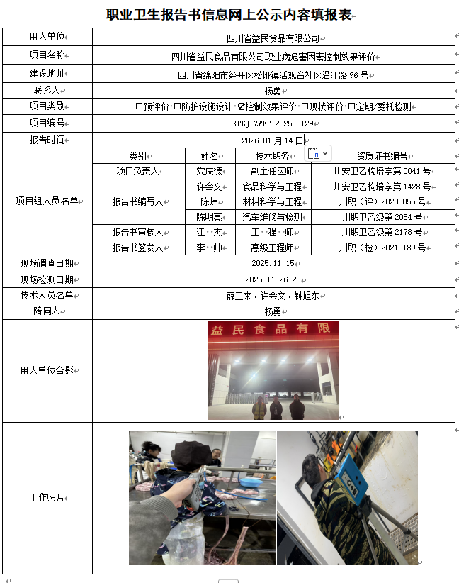 四川省益民食品有限公司职业病危害控制效果评价