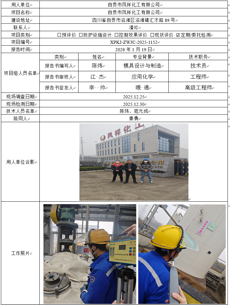 自贡市凤祥化工有限公司职业病危害因素定期检测