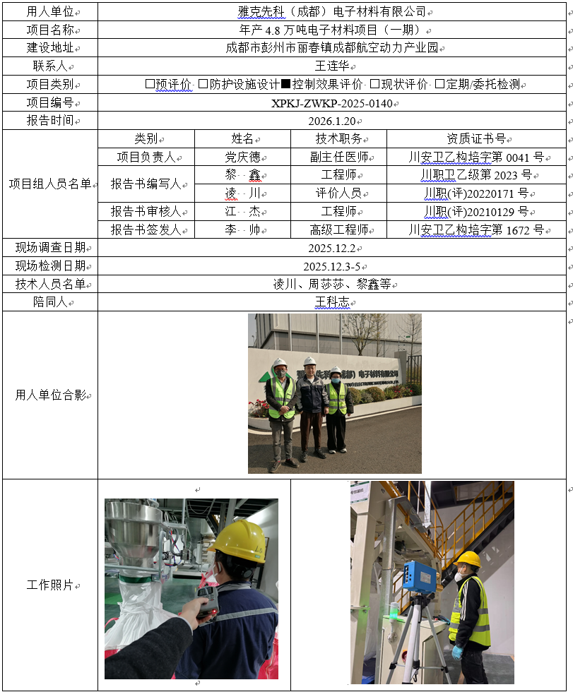 雅克先科(成都)电子材料有限公司职业病危害控制效果评价