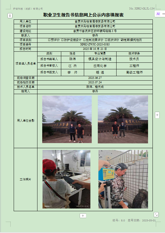 自贡同发荣新材料有限公司职业病危害因素定期检测