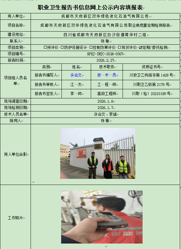成都市天府新区双华绿色液化石油气有限公司职业病危害因素定期检测