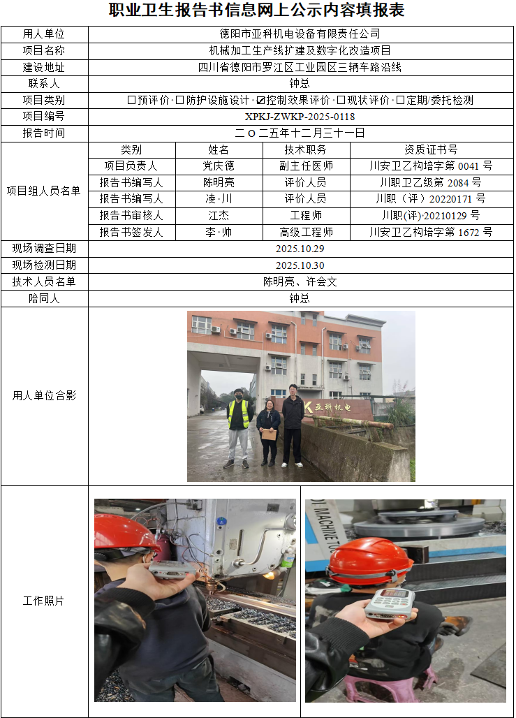 德阳亚科机电设备有限责任公司职业病危害控制效果评价