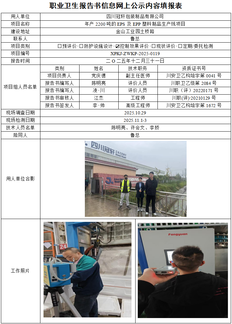 四川冠轩包装制品有限公司职业病危害控制效果评价