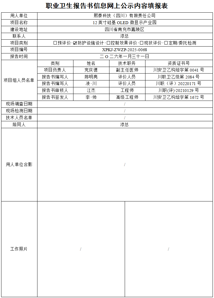 熙泰科技(四川)有限责任公司职业病防护设施设计