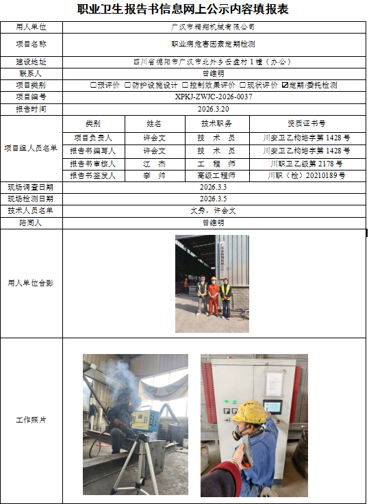 广汉市精翔机械有限公司职业病危害因素定期检测