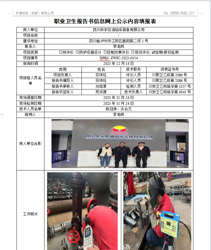 泸州智通自动化设备有限公司职业病危害因素定期检测