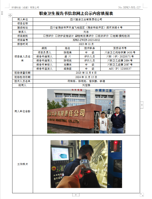宜宾精湛砂浆有限公司职业病危害因素定期检测