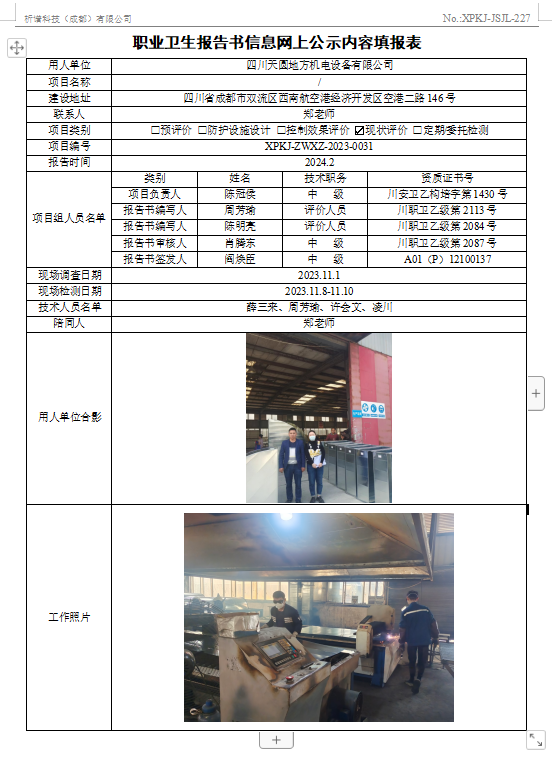 成都大博电气有限责任公司定期检测