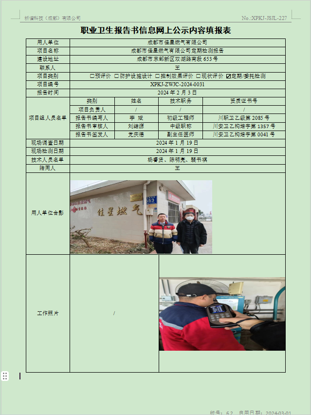 成都市佳星燃气有限公司定期检测