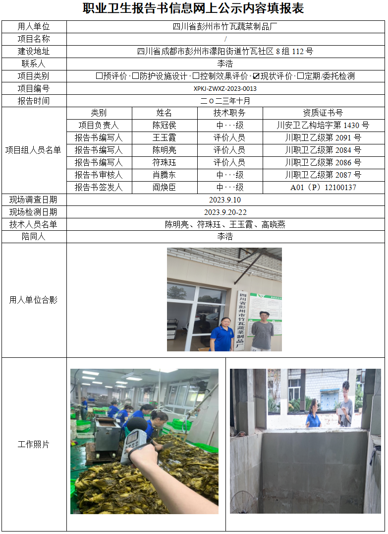彭州市竹瓦蔬菜制品厂现状评价